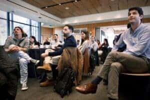 Participantes com diferentes backgrounds profissionais que propiciam o networking e a troca de experiências, revelando diferentes soluções para os mesmos desafios;
